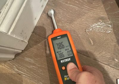 We promptly visited the property to assess the damage and recommended a full strip-out of the affected ceiling plasterboard and flooring to allow for proper structural drying. We installed professional drying equipment to prevent further deterioration and worked closely with the insurer to agree on a comprehensive scope of repairs. After persistent negotiation, the insurer accepted our recommendation to remove the damaged finishes, carry out full structural drying, and reinstate the flooring and joinery to their pre-loss condition.